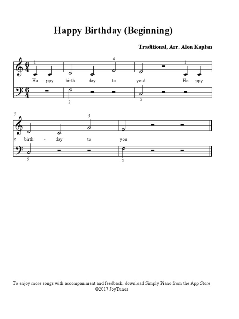 Happy Birthday Sheet Music Piano Solo Pdf Download Streaming Oktav